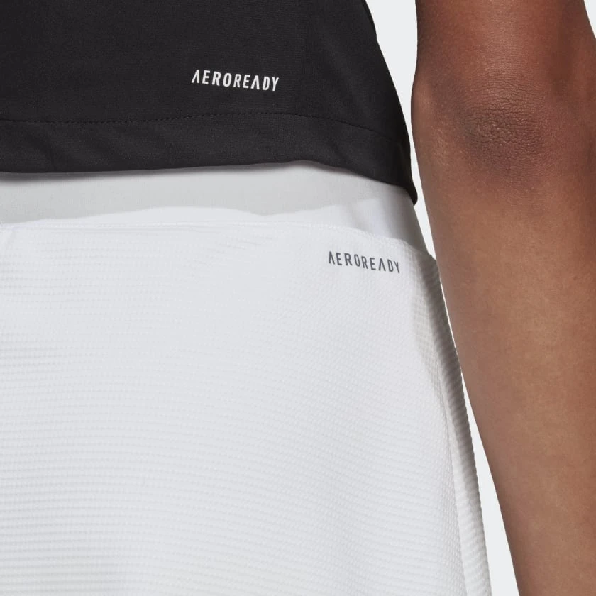 Country club style with a contemporary twist. This adidas Club skirt has textured fabric and a straight silhouette that’ll go with every tennis top in your wardrobe. Its breathable build will keep you dry through the fiercest rallies. Integrated tights add coverage for confidence on court. This product is made with Primegreen, a series of high-performance recycled materials.