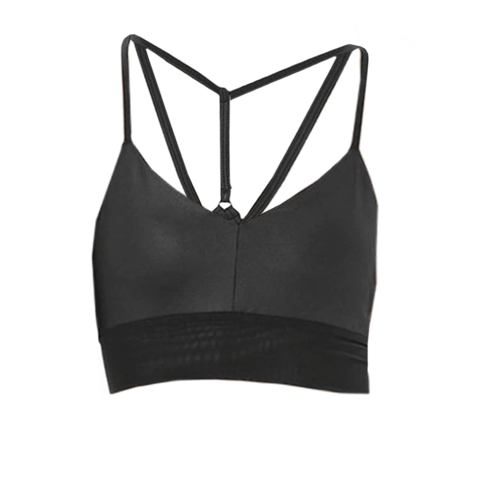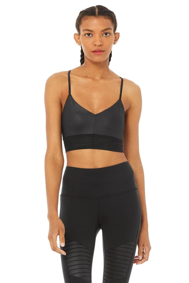 Simple but pretty, this bralette has slim straps that kiss between the shoulders, a wide mesh band and glossy fabric. The Lavish Bra is breathable and versatile with removable cups and medium support.
