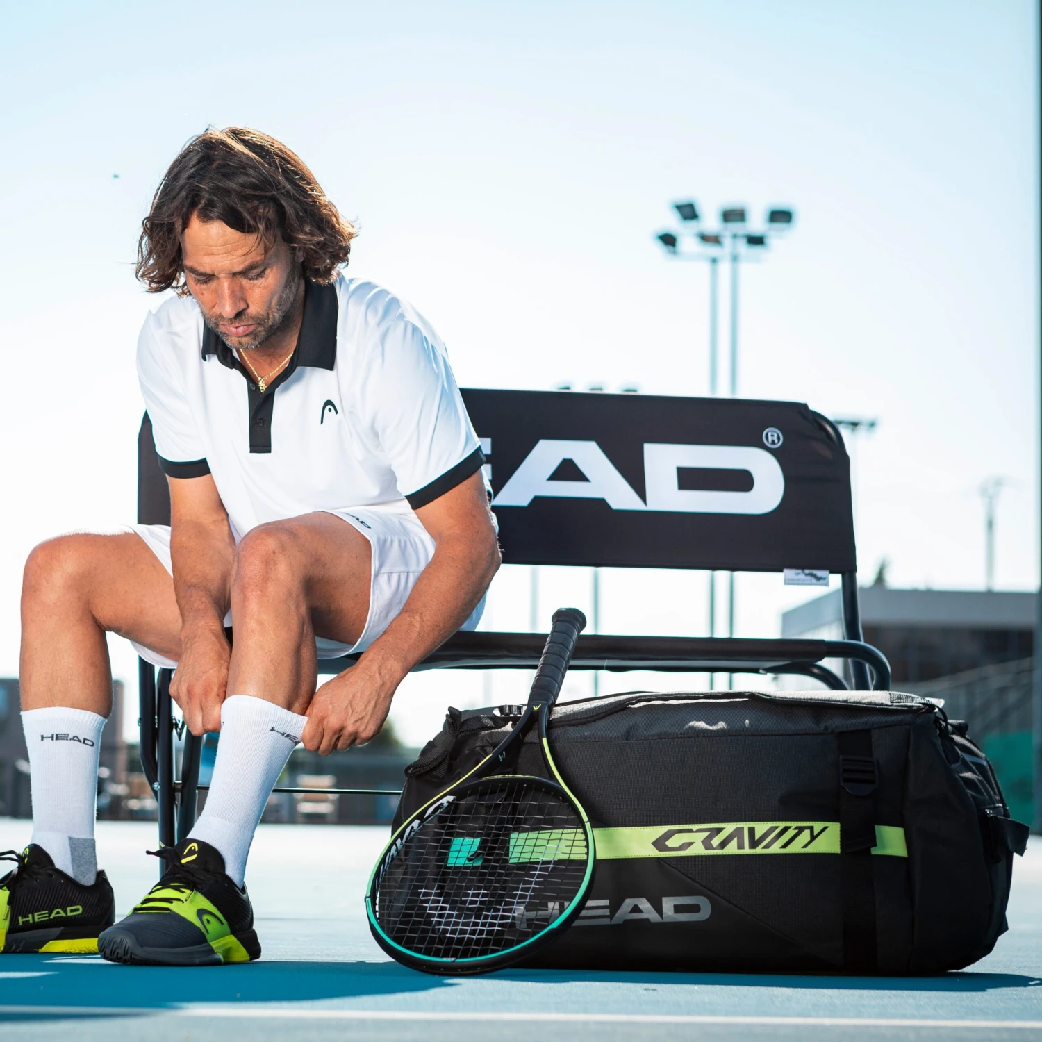 Eco-conscious and style-conscious tennis players will adore the GRAVITY R-PET DUFFLE BAG TENNIS BAG, which is made from recycled PET bottles, and has a contemporary, urban aesthetic in keeping with the GRAVITY racquet series. Alexander Zverev, who believes “we should all take greater care of the planet”, carries this bag with its modern, multi-functional design – it is not shaped like a traditional racquet bag. It is easy to customize, with adjustable dividers that attach to the clothes-friendly Velcro tapes inside: choose between storing all your kit in one huge compartment or separating the interior into several smaller compartments.