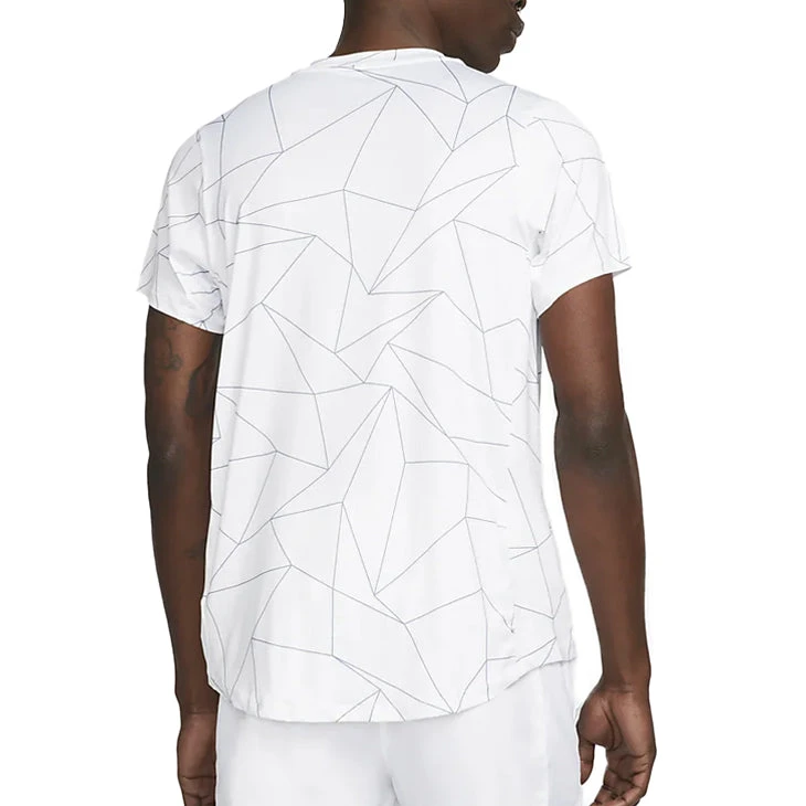 Stretchy, breathable and made from at least 75% recycled polyester fibres, the NikeCourt Dri-FIT Advantage Top will soon be your go-to choice for fast, fierce matches. The abstract print is inspired by the geometric lines of the court.
