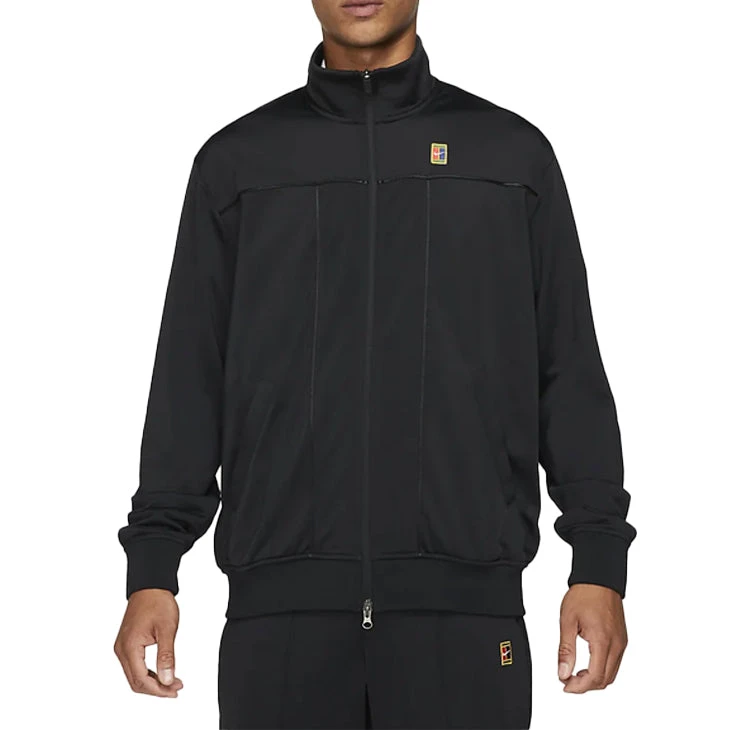 Taking its cues from the layout of a tennis court, the NikeCourt Jacket lets you rep your favourite sport long after your match ends. Its smooth knit fabric and ribbed details create the look and feel of a classic tracksuit jacket. This product is made from 100% recycled polyester fibres.