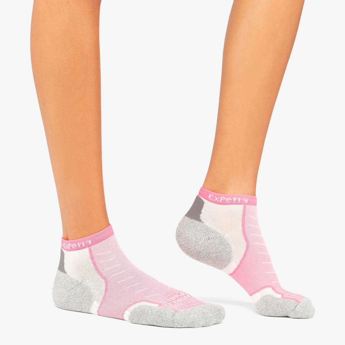 Designed for carefree feet! Experia is powered by THORLO anatomically engineered pads for foot protection without bulk and weight. The sculpted padding helps prevent blisters and foot pain by absorbing the shearing and impact forces experienced by your feet. Multi-spot design is crafted to allow you to run, walk and play longer, better and most importantly…carefree!