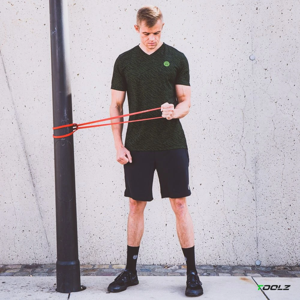 The TOOLZ resistance bands effectively improve strength and also train mobility and flexibility of the body. The fitness bands can be combined optimally with the equipment training or the free training and make possible a variety of exercises. The material made of high-quality latex is durable and ensures long enjoyment of the bands.